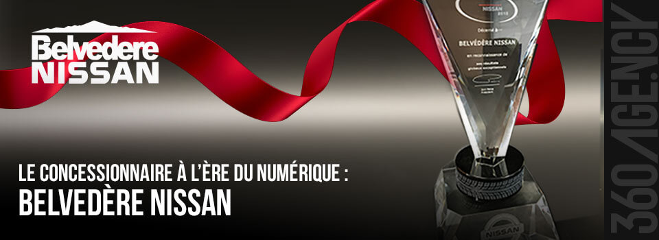 Plus près de nous, sans tambour ni trompettes, un concessionnaire de la couronne Nord de Montréal, Belvédère Nissan s’est hissé parmi les leaders de son marché grâce à une utilisation accrue et stratégique des médias numériques. Établi depuis plus de 50 ans, le concessionnaire s’est vu remettre le Prix d’Excellence Nissan pour la qualité de son service mais également en raison de la croissance soutenue de ses résultats de ventes soit plus de 32% depuis 2 ans.